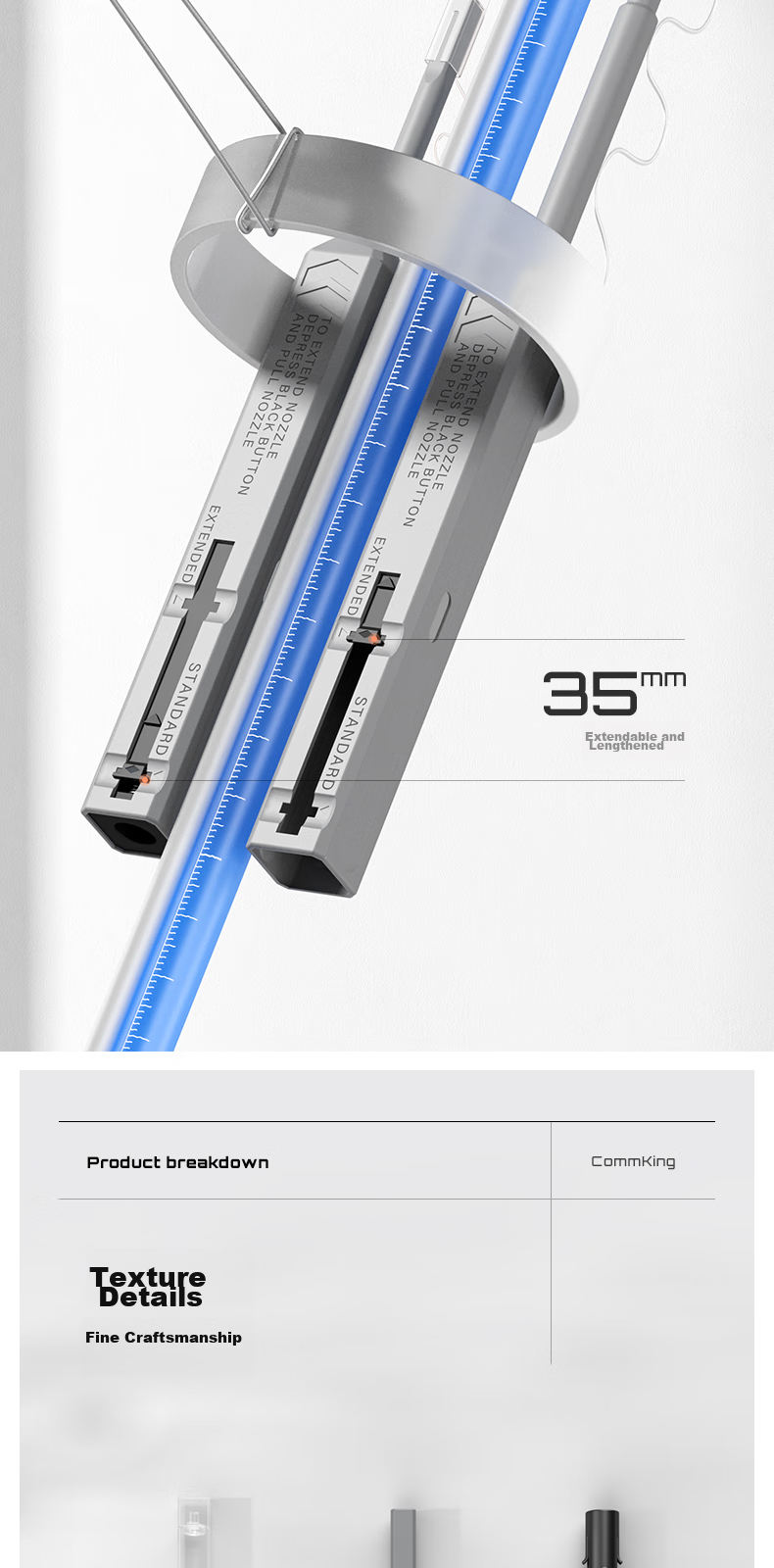 - Extension design for cleaning hard-to-reach areas