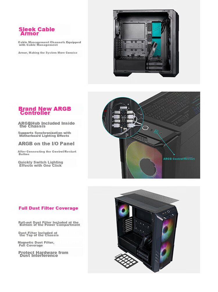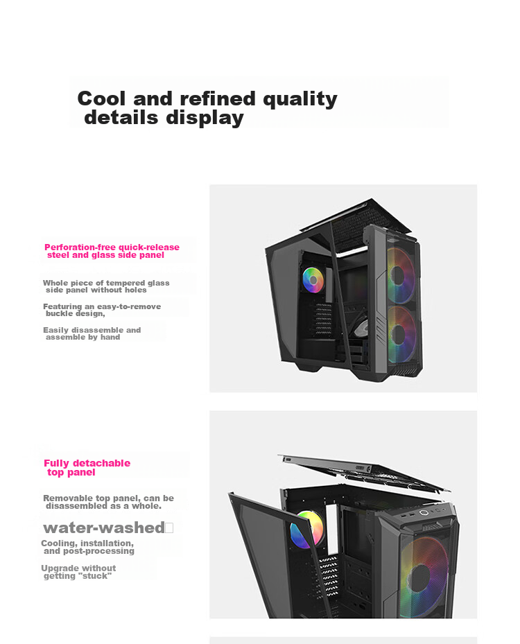 **Additional Information:** Supports Mini-ITX, Micro-ATX, ATX, E-ATX motherboards (up to 12" x 14.1"), click [here](link) for installation showcase.