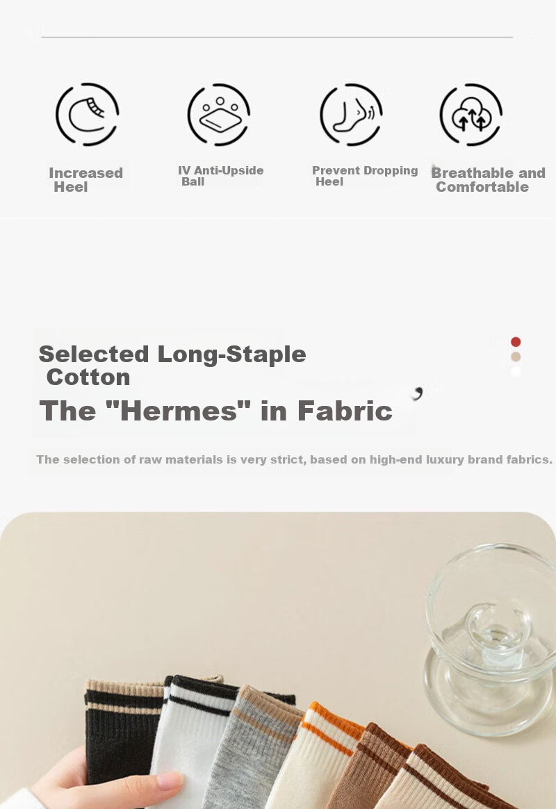 **Enhancements:** Anti-pilling IV heel, breathable and comfortable, selected long-staple cotton for premium quality