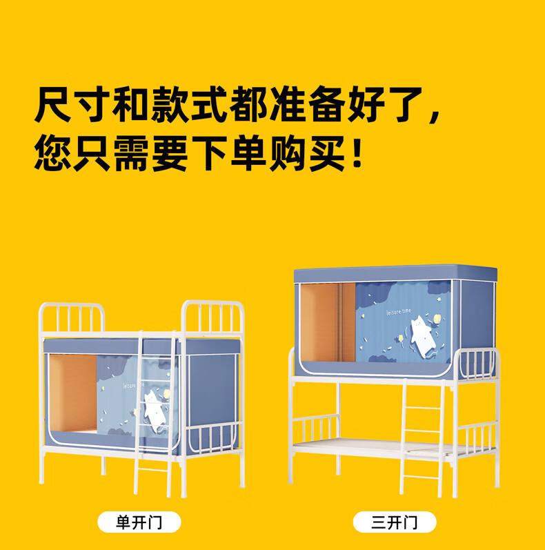 - 0.8m bed: Width 80 * Length 190 * Height 110cm (triple door/upper bunk bed with increased height)