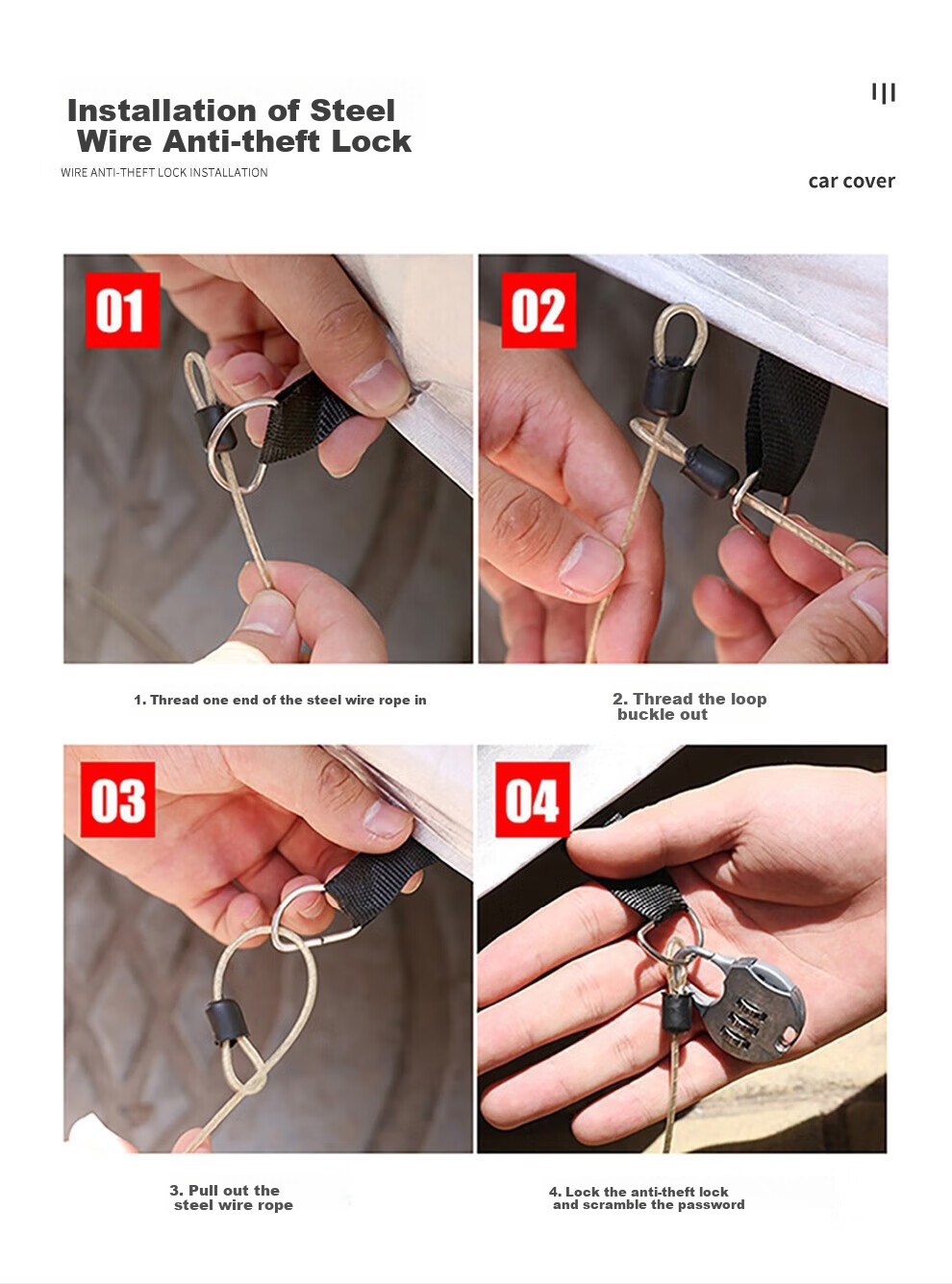 **Installation:** Easy installation with windproof straps and wire anti-theft lock