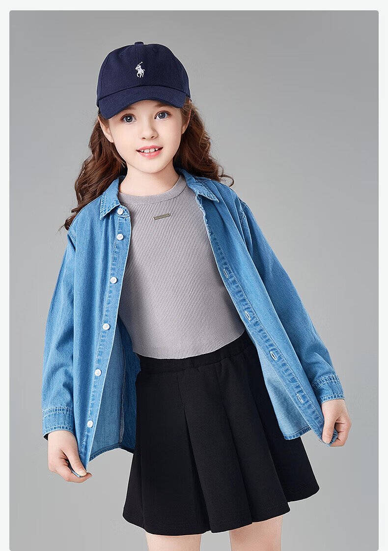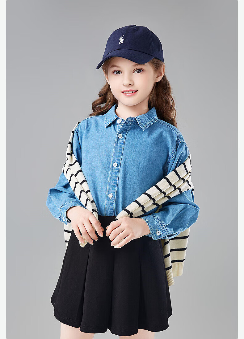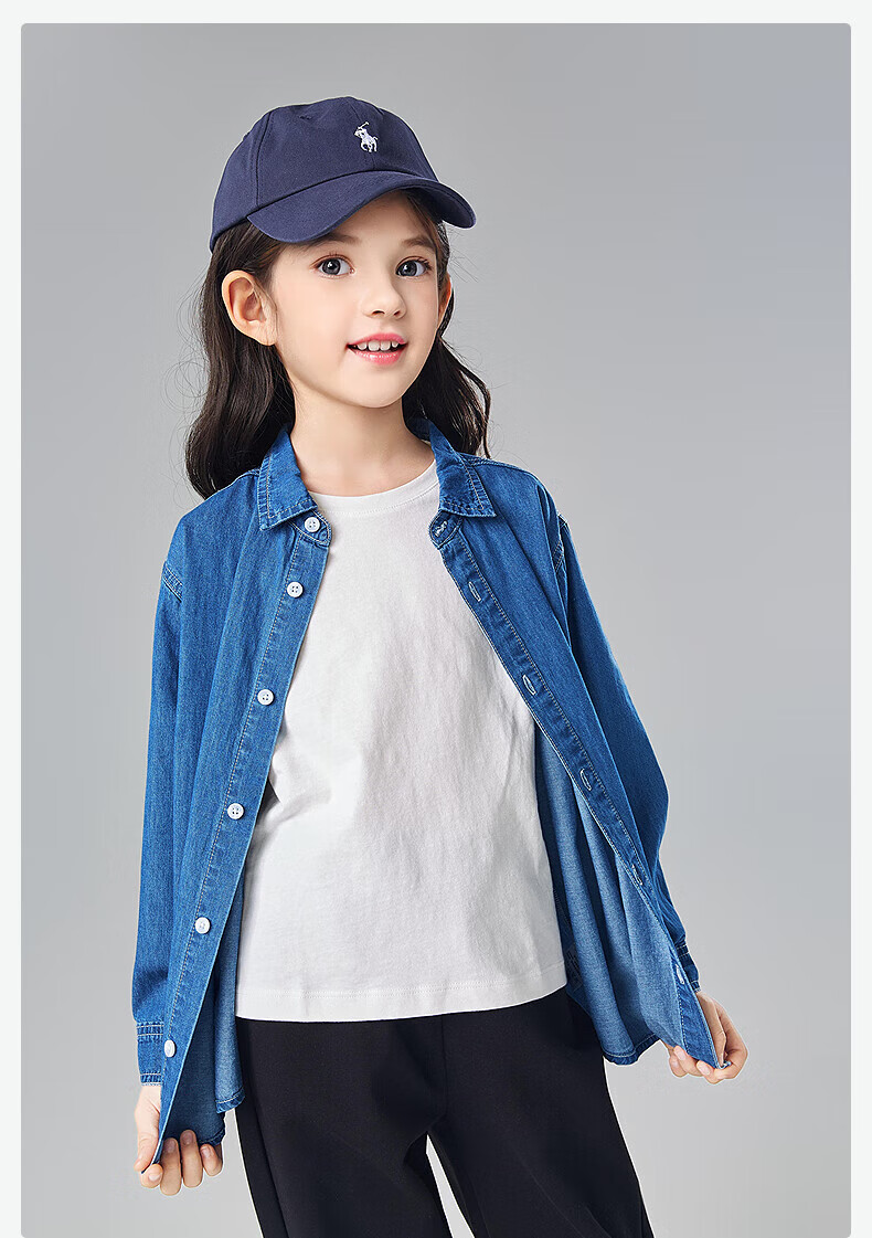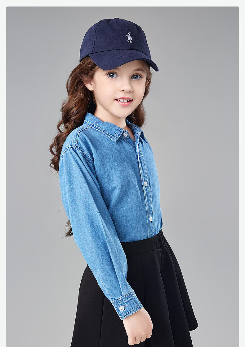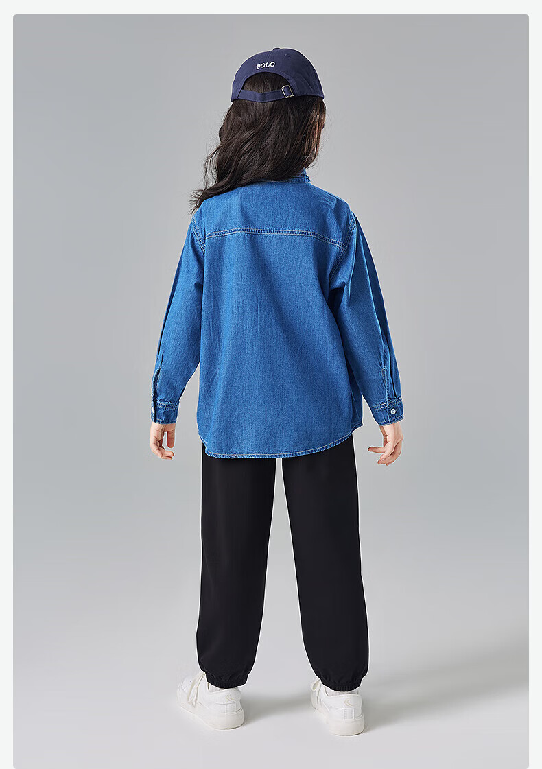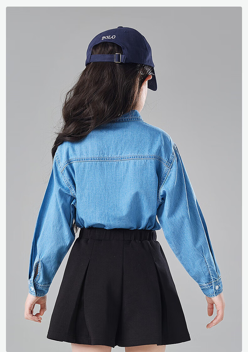 DEESHA Girls' Shirt 2025 Spring Children's Wear Girls' Drop-shoulder Denim Shirt Long Sleeve Denim Blue 130