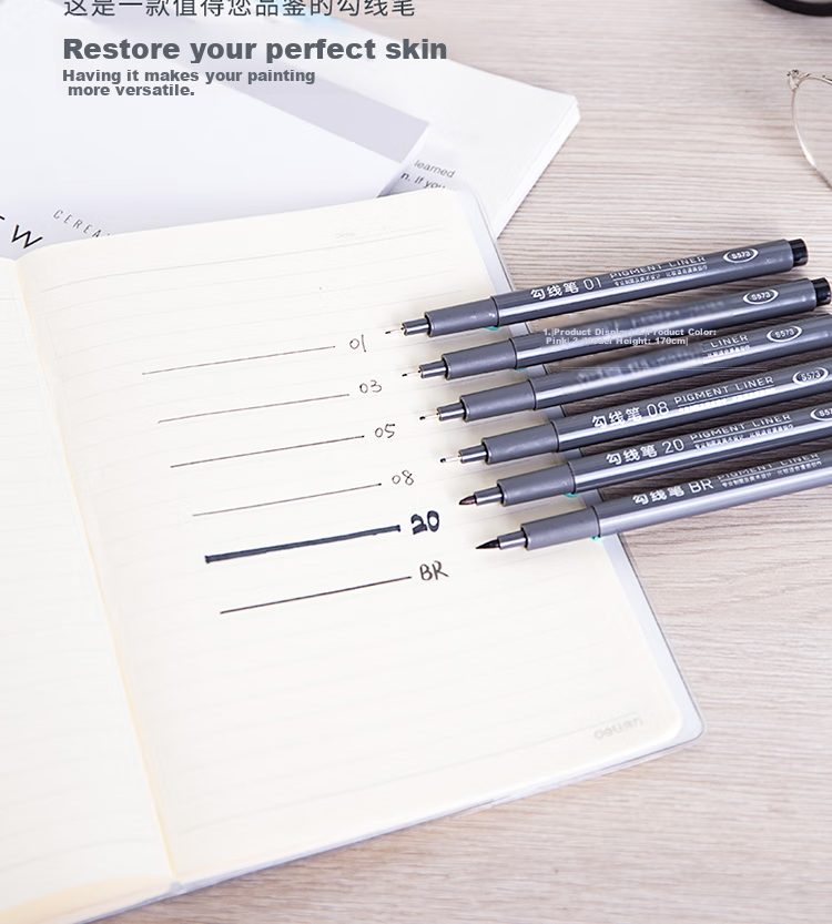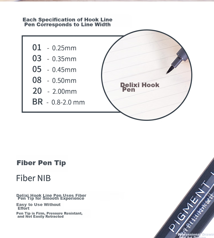 Corresponding line widths: 01-0.25mm, 03-0.35mm, 05-0.45mm, 08-0.50mm, 20-2.00mm, BR-0.8-2.0mm
