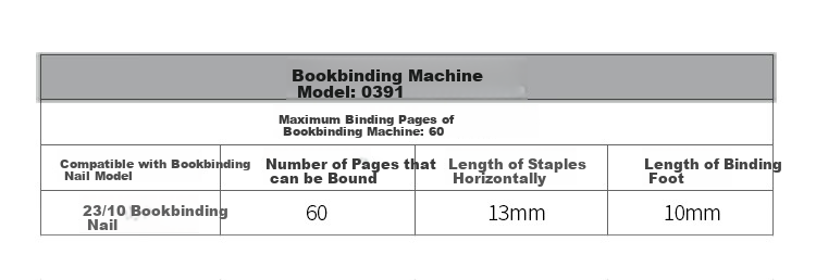 Recommended for binding 60 sheets of 70g paper
