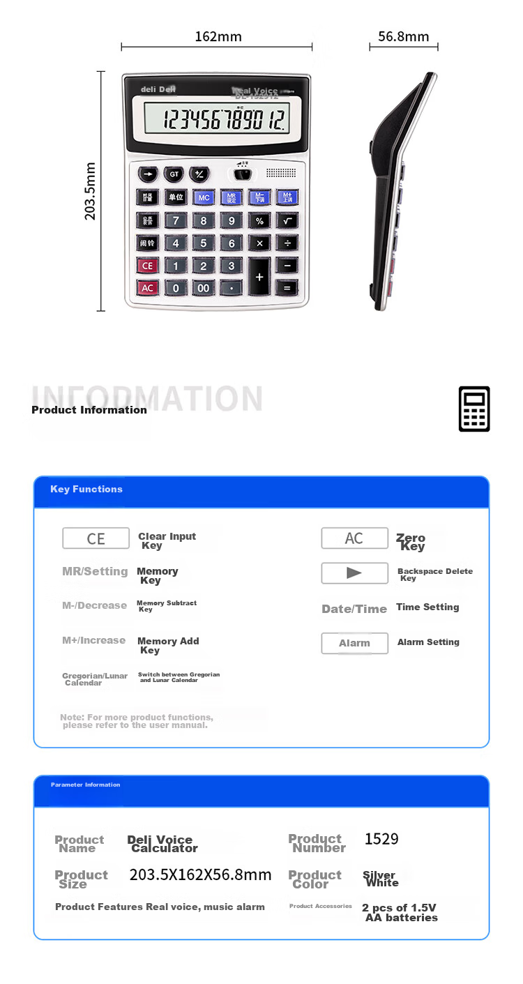 **Functions:** Voice calculation, music alarm clock
