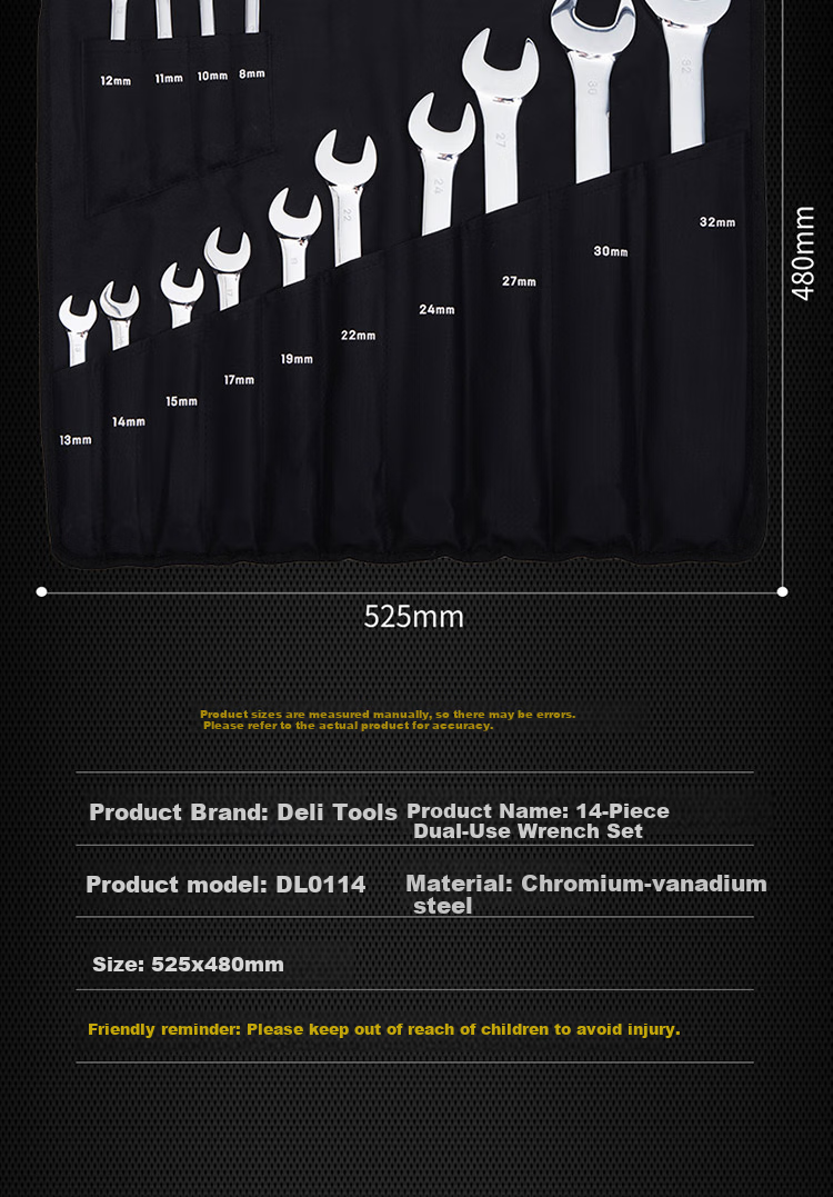 Package Includes: 14 pieces of dual-use wrenches (8-32mm)