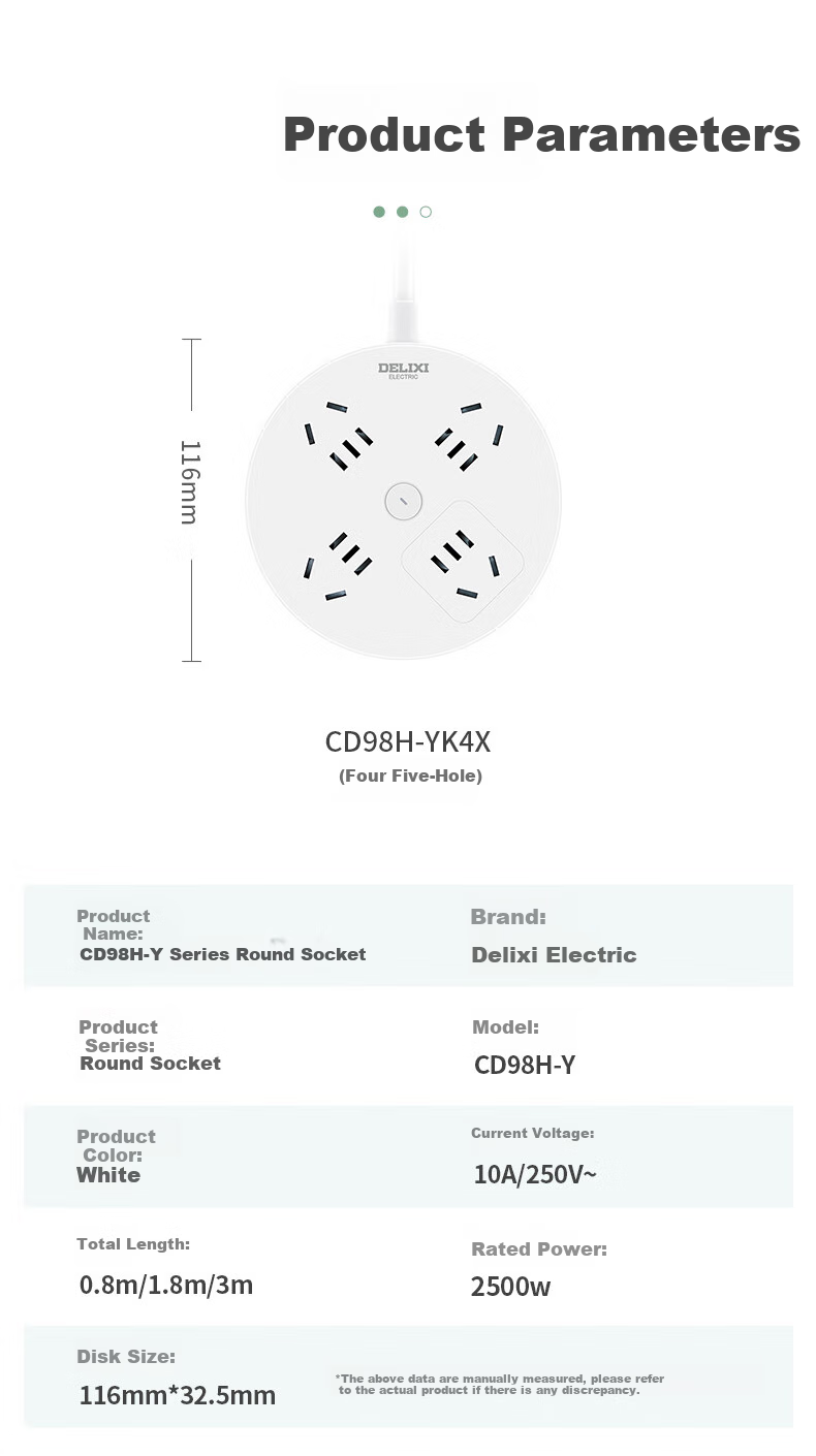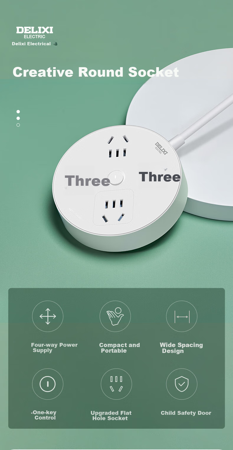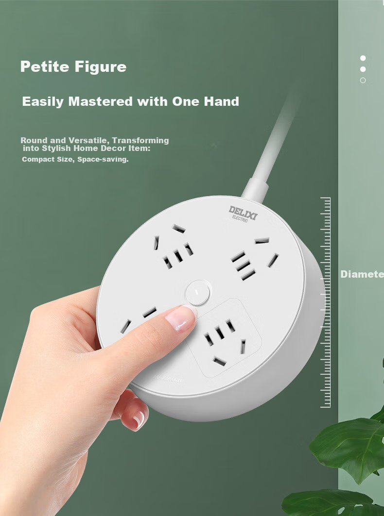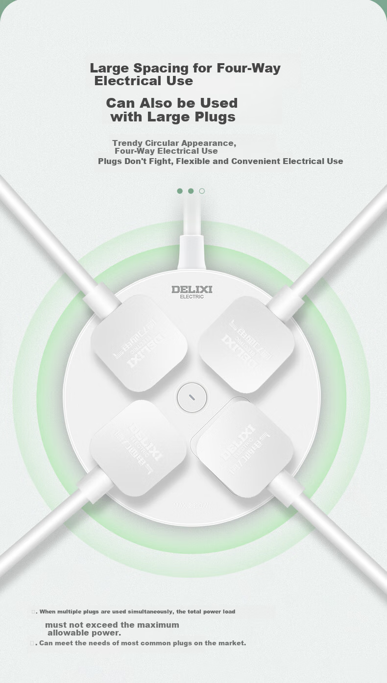 Features: Creative round socket design, four-way power supply, compact and portable, child protection door, upgrade to flat plug socket, one-key master control switch, modern round appearance, child-friendly design, multiple protections for safety, compact size for easy handling, transparent master control switch, upgraded flat plug hole design, reduced risk of foreign object insertion, suitable for most conventional plugs.