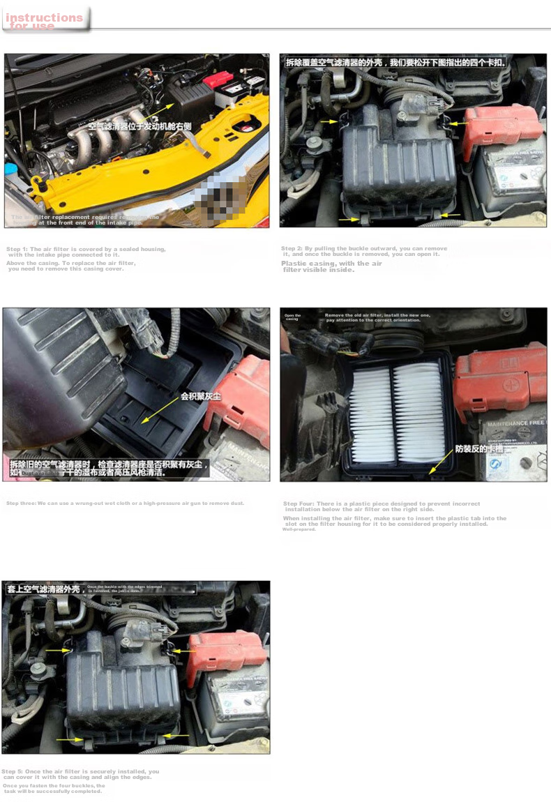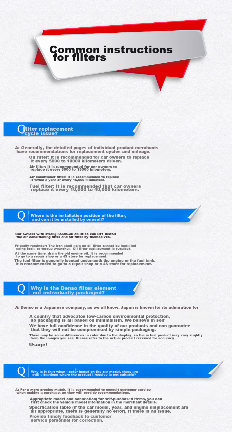 - Recommended replacement intervals: 5000-10000 km for oil filter, 5000-15000 km for air filter, 1 year or 15000 km for cabin air filter, and 10000-40000 km for fuel filter.
