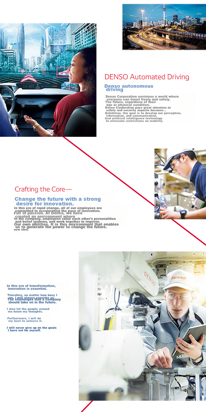 - DENSO is committed to developing efficient driving, connected driving, and automated driving technologies for a safer, more connected, and sustainable future in the automotive industry.