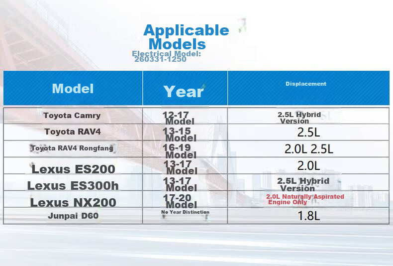 **Compatibility:** Suitable for the following vehicle models: