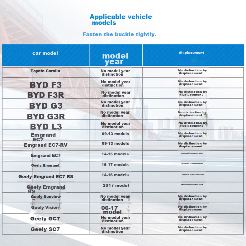 - Geely Emgrand EC7 (09-15), EC7-RV (09-13), Emgrand EC7 (14-15), Emgrand EC7 RS, Emgrand EC7 RS (14-16), Emgrand RS, Vision, GC7, SC7