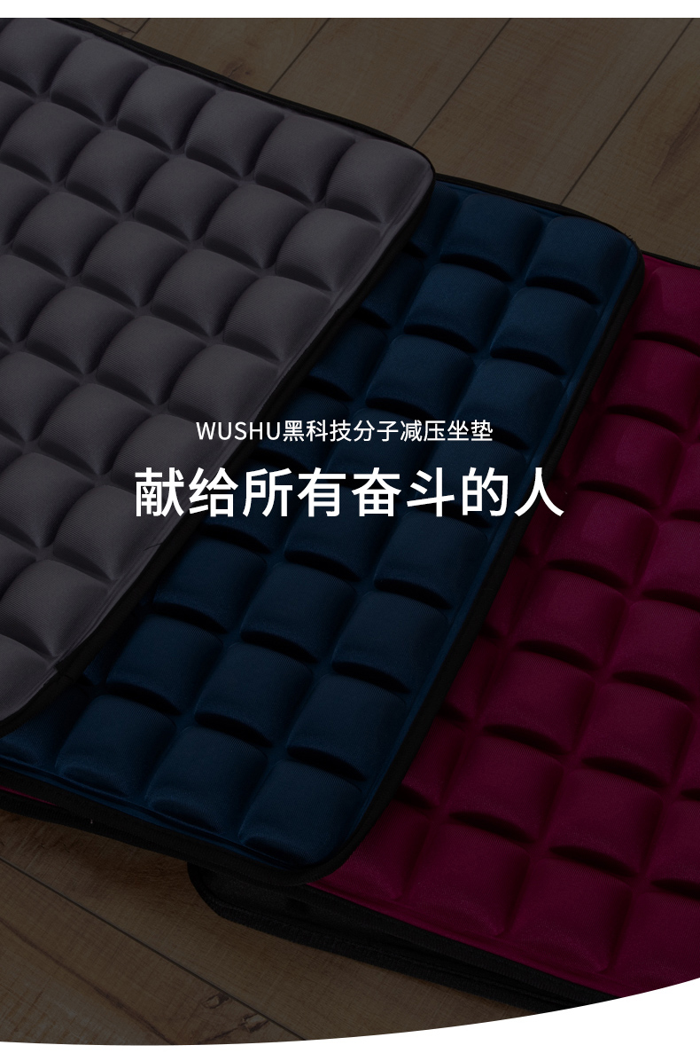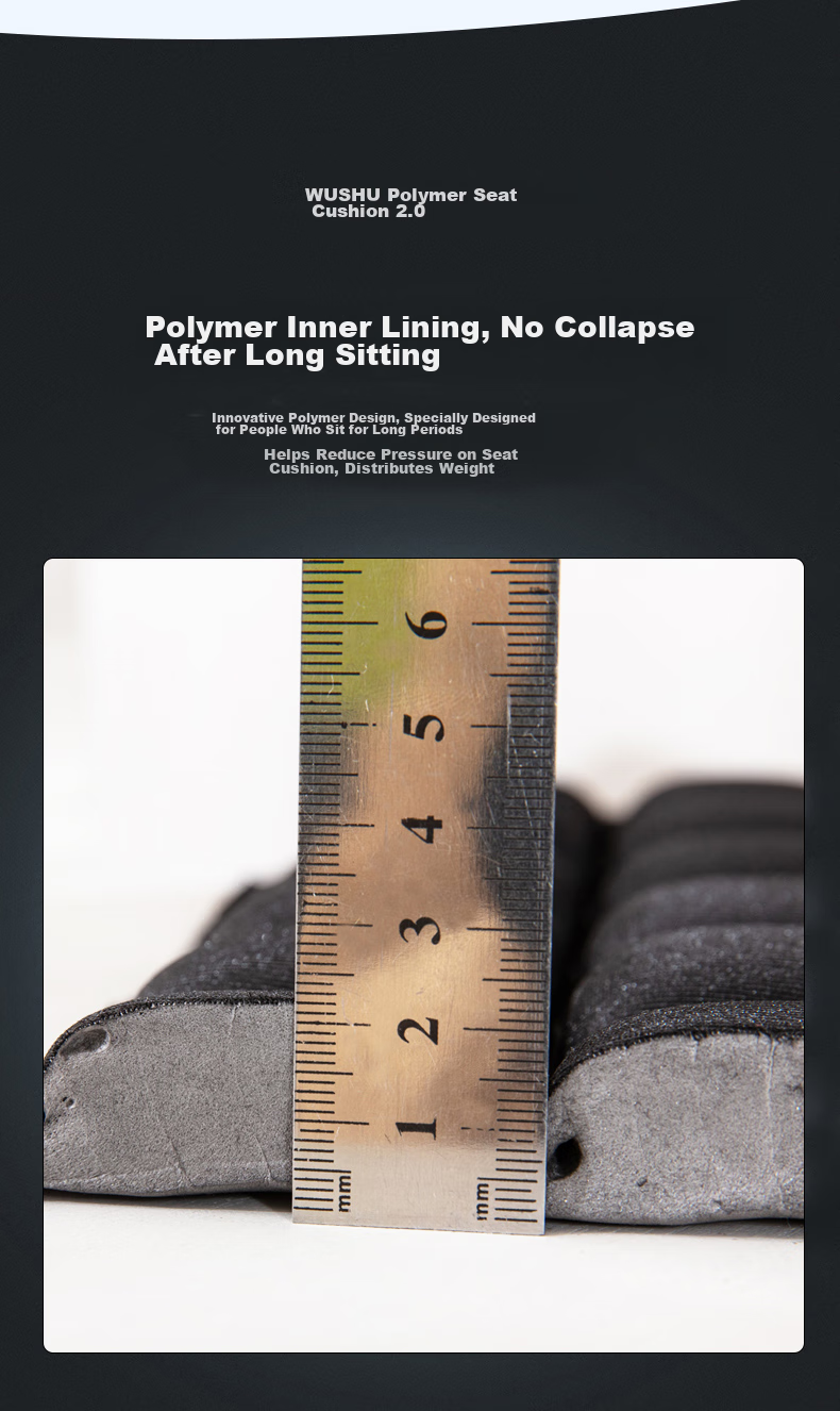 **WUSHU High Polymer Cushion 2.0:** Specifically designed for long-term sitters to reduce pressure and discomfort on the thighs.