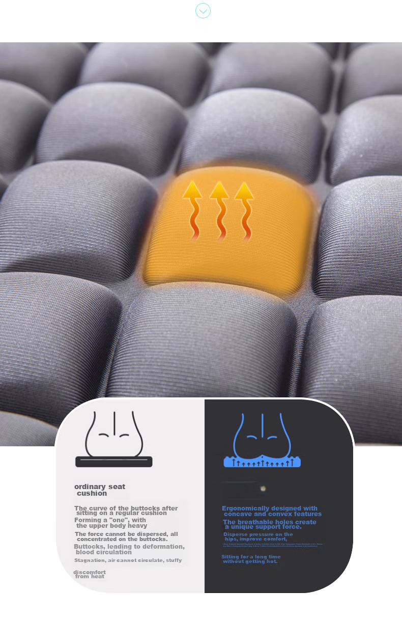 **Description:** A revolutionary cushion for the buttocks, featuring black technology molecular decompression cushion.