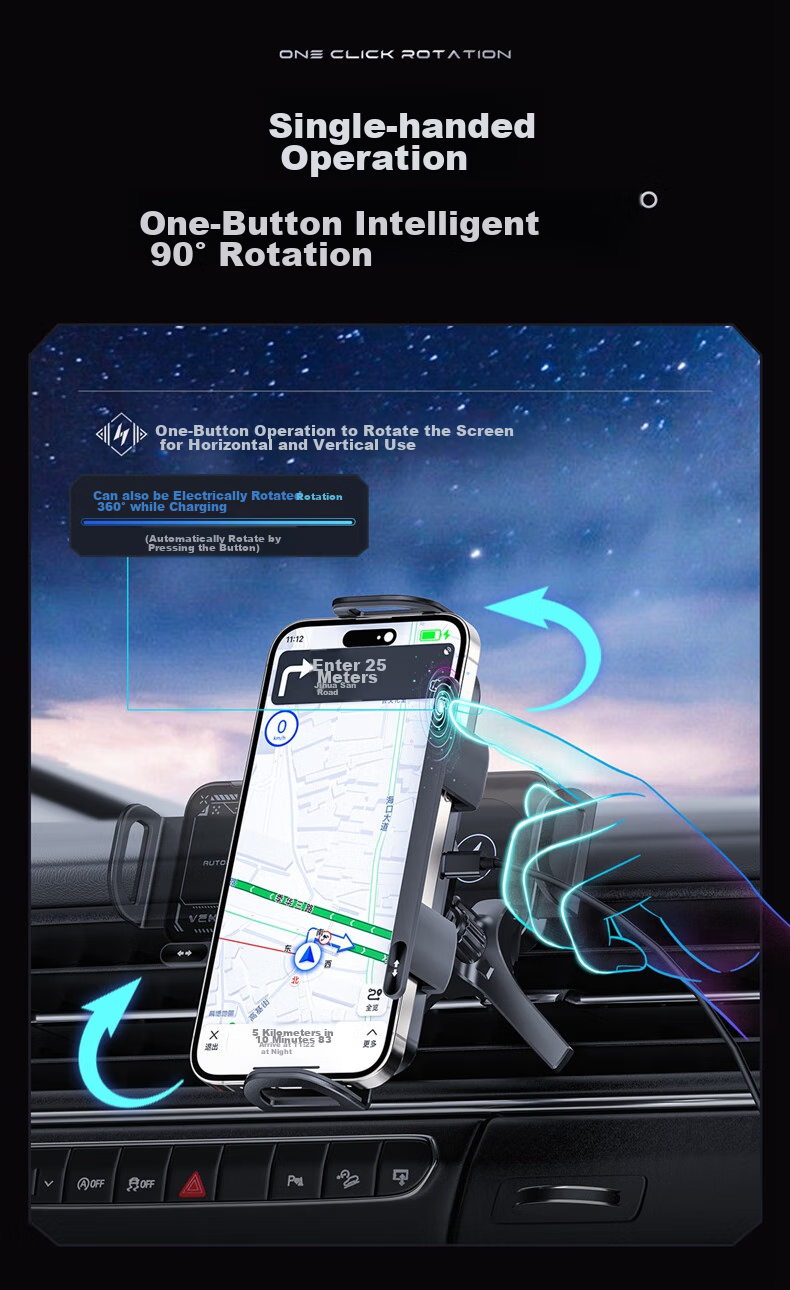 **Rotation Function:** One-click rotation for easy 90-degree screen rotation, enabling both landscape and portrait mode charging. Automatic 360° rotation with a single button press.