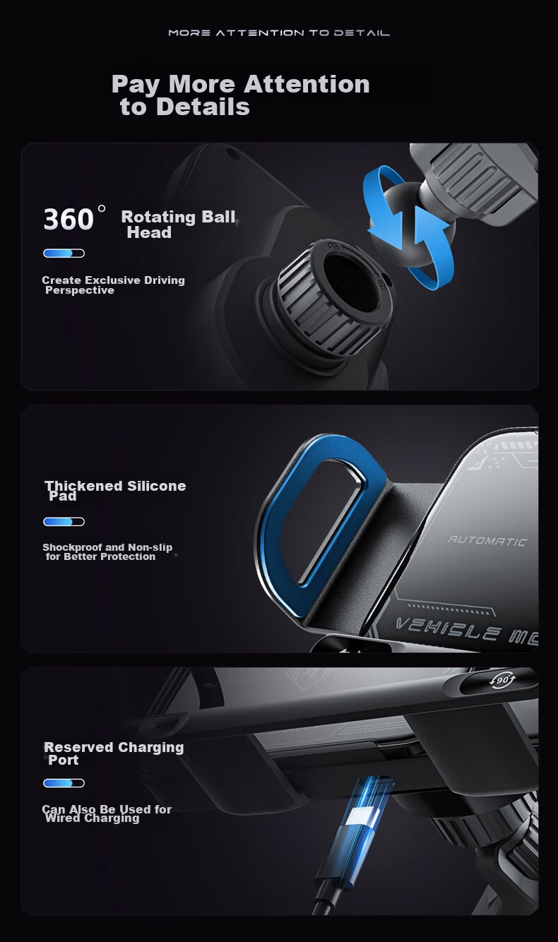 **Additional Features:** Supports charging with phone cases, 360° rotating ball head for customized viewing angles, anti-slip silicone pads, and reserved charging port for wired charging.