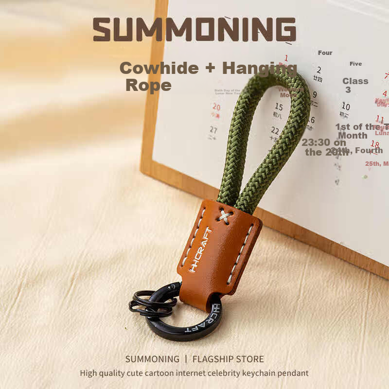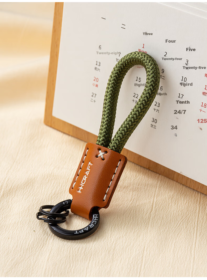 Dijialun Leather Braided Rope Keychain Pendant, High-Quality Car Key Ring, Loop for Men And Women, Hand Strap, School Bag Accessory, Gree