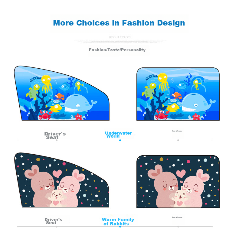 Patterns: Driver's seat (Underwater World), Rear window (Warm Family of Rabbits)