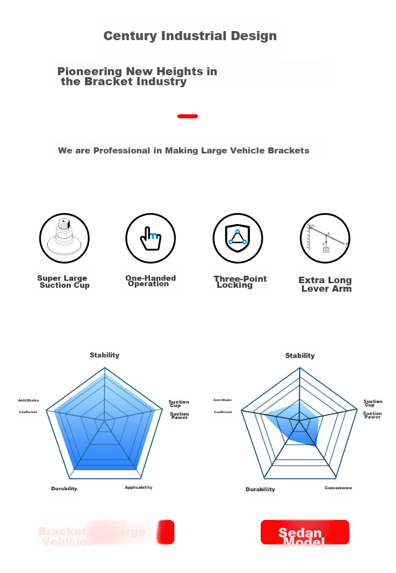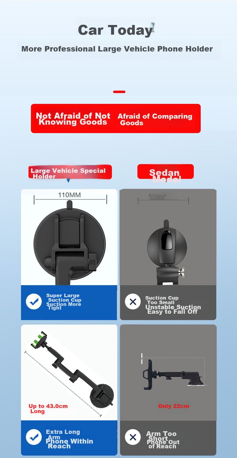 - Large suction cup and long arm for secure grip and stability