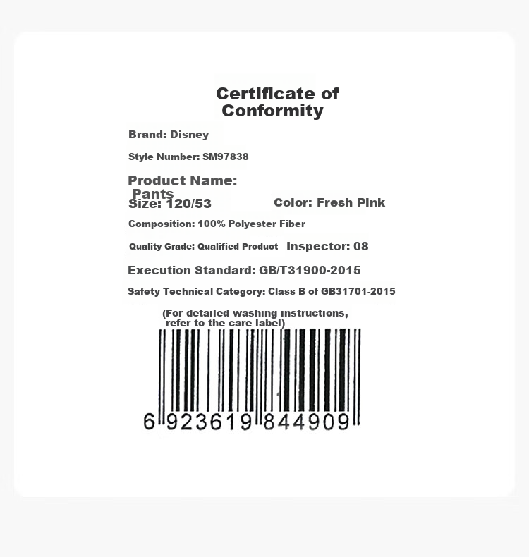 Certification: Qualified product, compliant with GB/T31900-2015 and GB31701-2015B safety standards