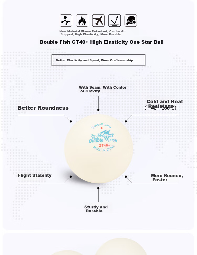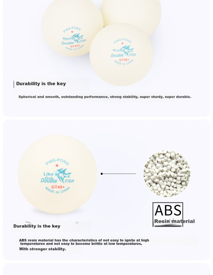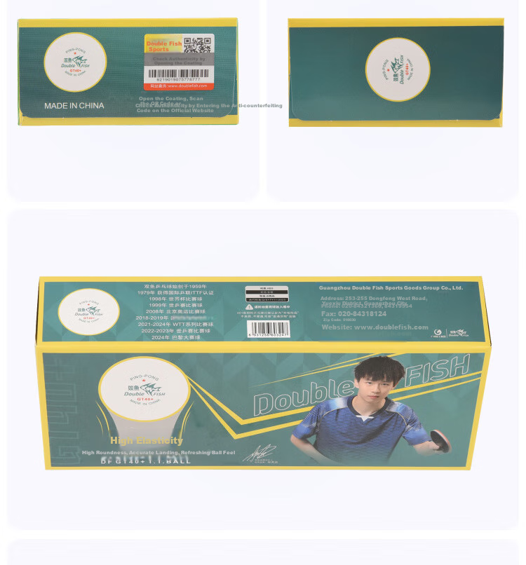 DOUBLE FISH offers a range of high-quality sports equipment, including the DFGT40+T.T.BALL table tennis ball made of ABS resin for durability and stability. The brand emphasizes high elasticity, precise landing, and a refreshing ball feel. The products are manufactured with advanced techniques, ensuring flight stability and resistance to impact. Customers can verify the authenticity of the products through the official website or QR code scanning. The company is based in Guangzhou, China, and is committed to providing top-notch sports gear for enthusiasts worldwide.