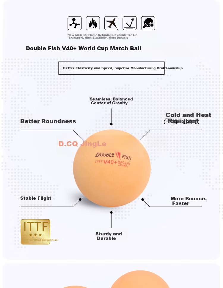 - In 2018, the Double Fish V40+ Table Tennis ball became the designated competition ball for the Team World Cup.