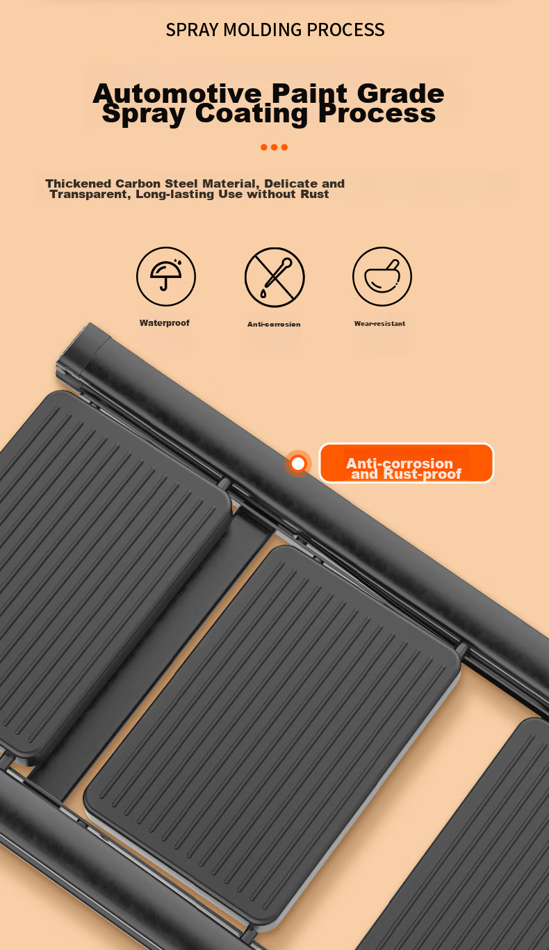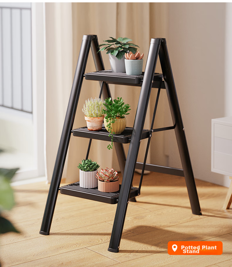 **Safety Features:** Triangular design for stability, reinforced double crossbars, non-slip foot pads