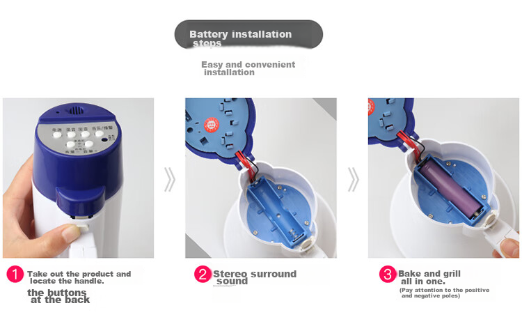 Battery Installation: Simple installation process, insert the battery into the battery compartment (pay attention to the positive and negative poles)