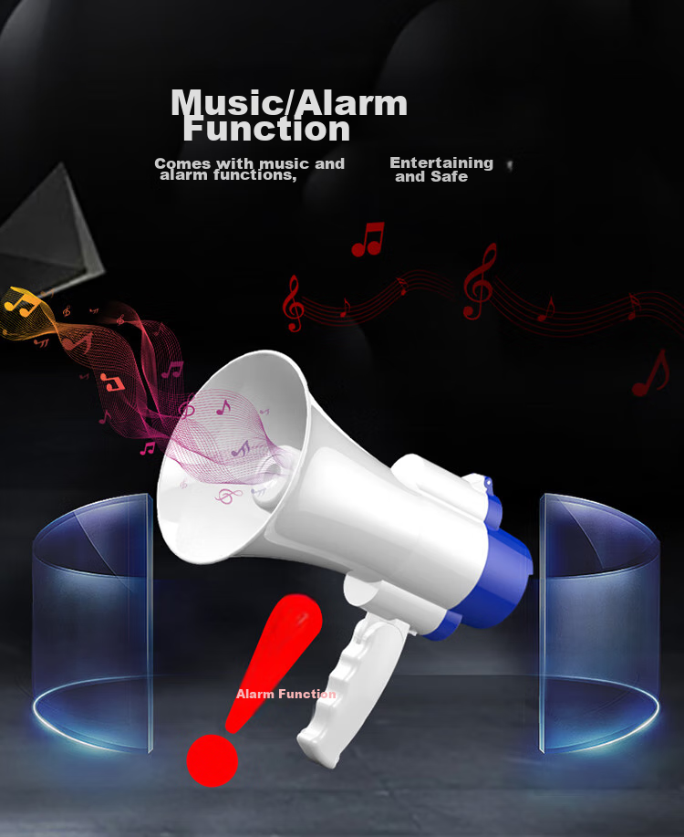 Features: Music/alarm, volume adjustment, strong penetration, large-caliber speaker, one-key recording, large-capacity lithium battery, ABS material, long-distance propagation, direct shouting