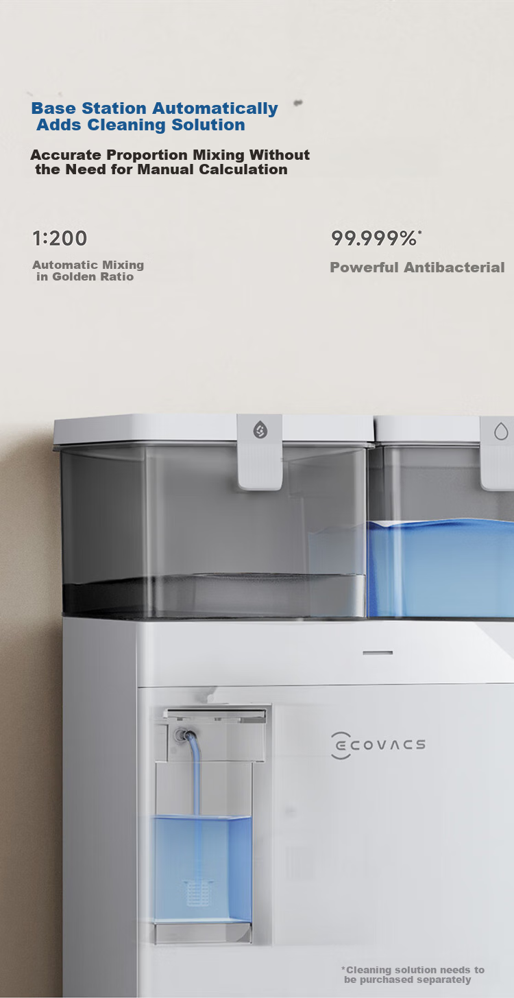 **Note:** ECOVACS cleaning solution is sold separately for use with the self-cleaning base.