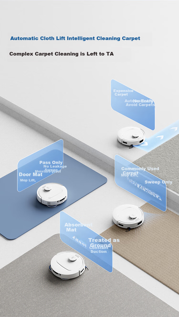 **Auto-Rise Mopping:** Adjusts mopping level when encountering carpets or rugs for optimal cleaning.