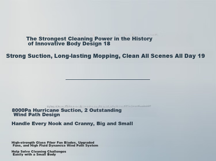 **Cleaning Power:** Equipped with an 8000Pa suction power, advanced airflow design, and specialized brushes for efficient cleaning on various surfaces.