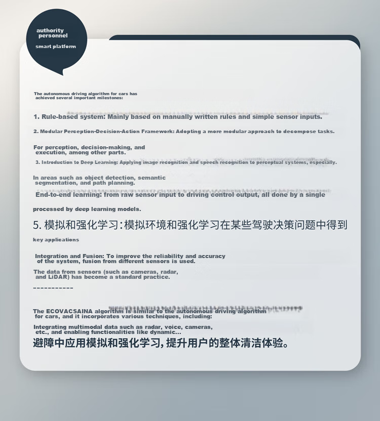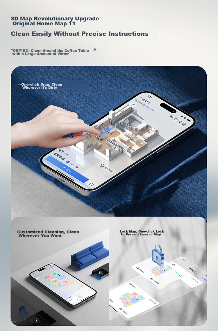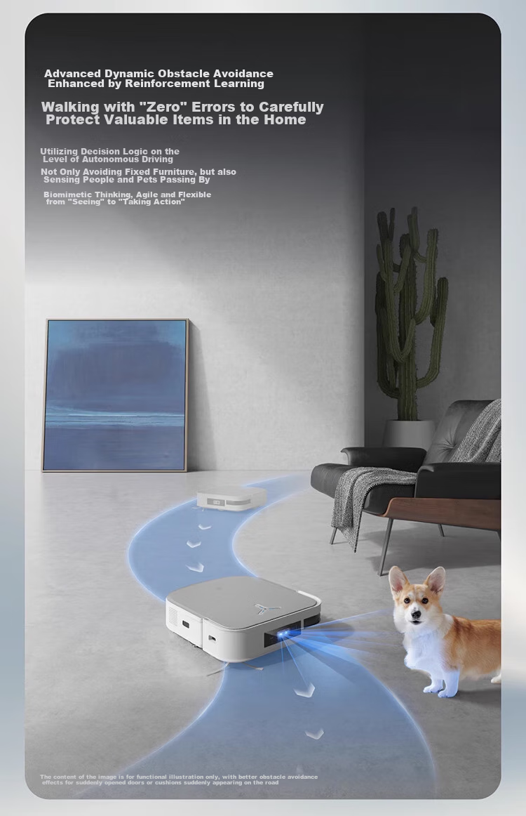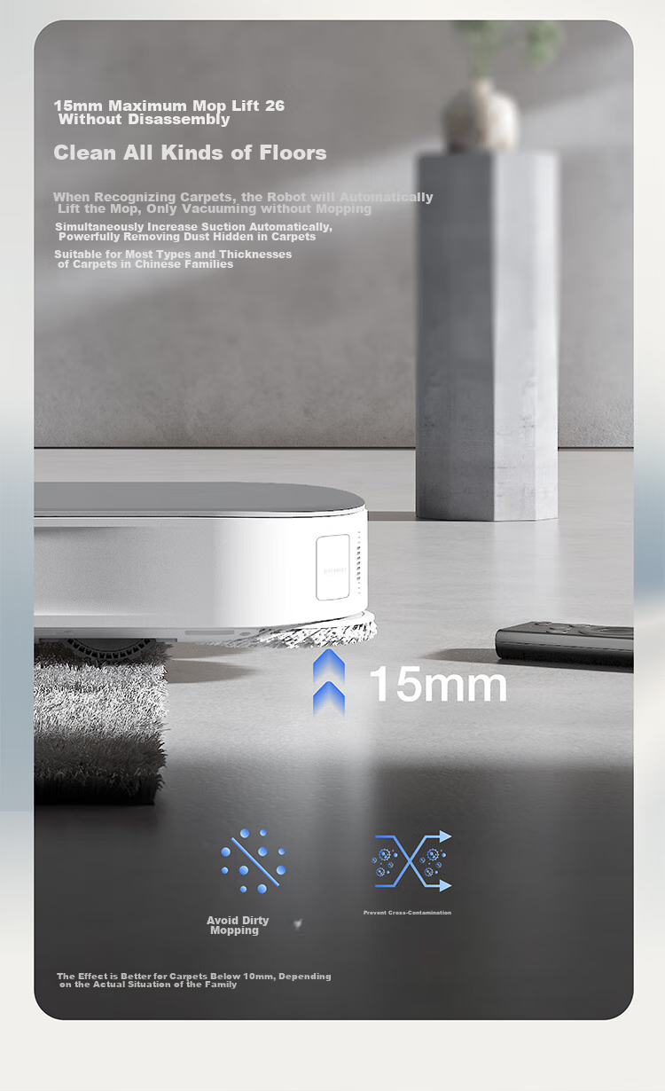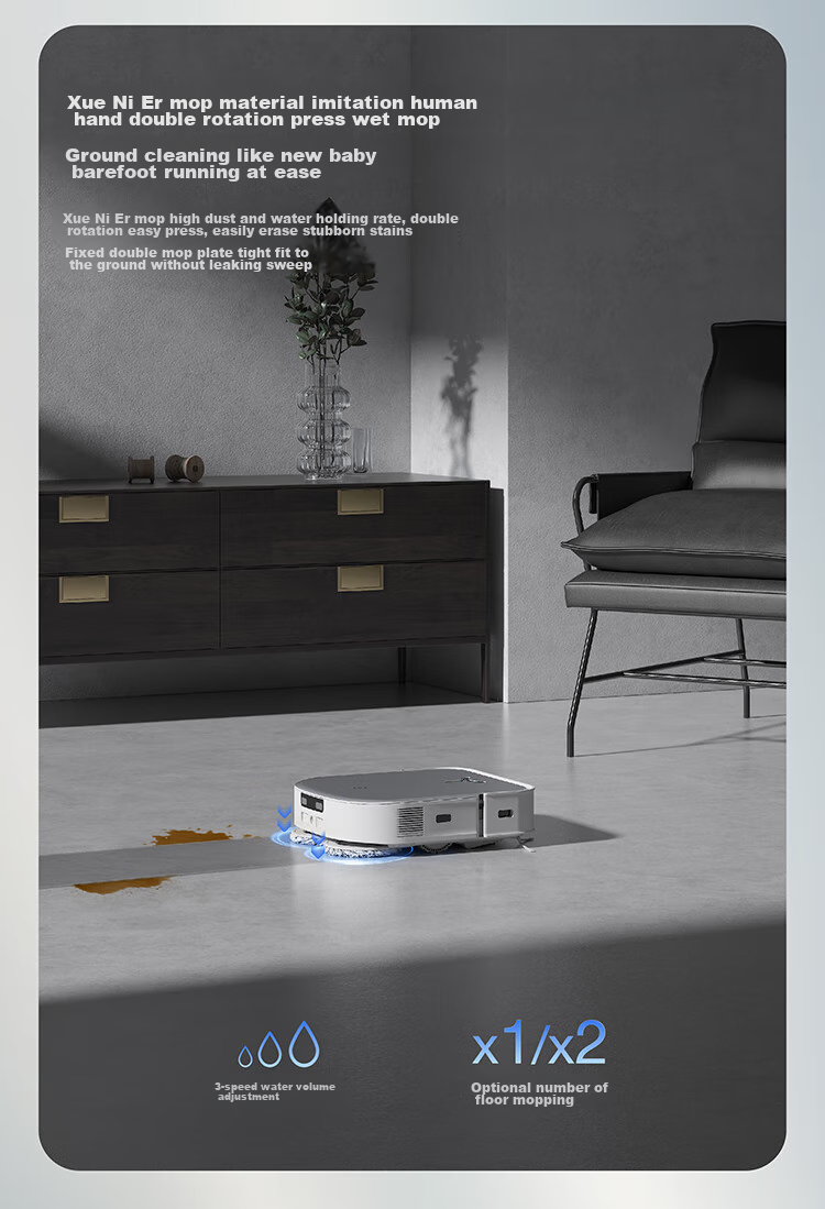 **Navigation:** Utilizes a hybrid solid-state laser radar for precise mapping and obstacle avoidance, ensuring thorough coverage and efficient cleaning.
