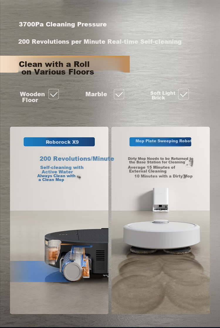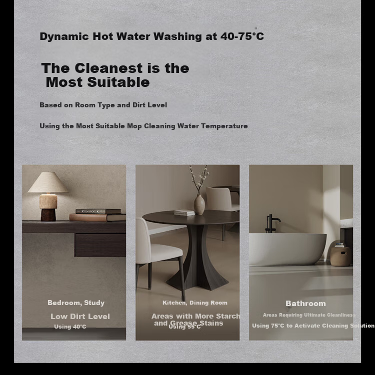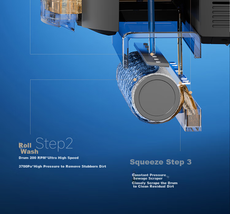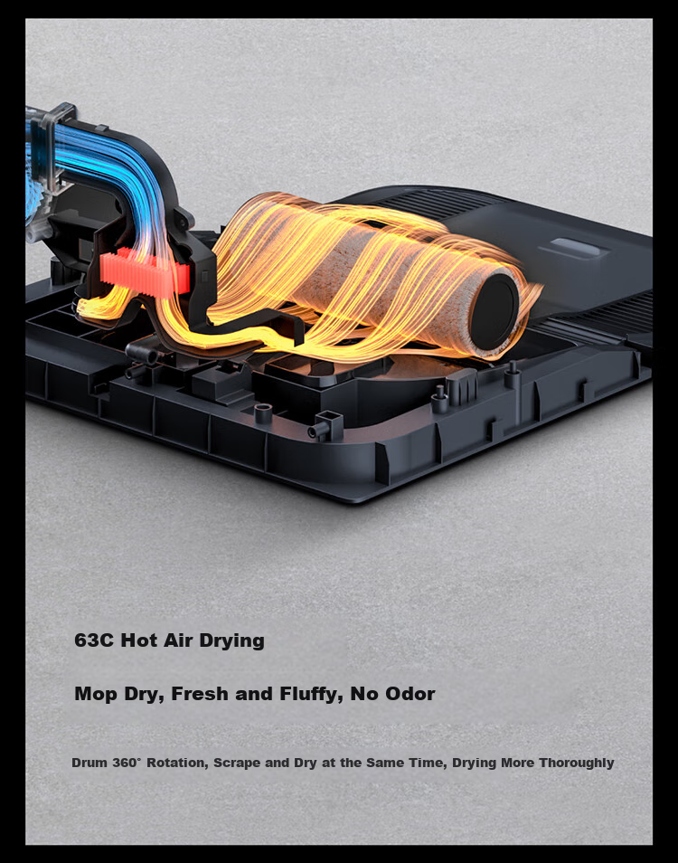 **Additional Features:** Offers 63°C hot air drying, self-cleaning mop, and a maintenance-free cleaning tank for convenience. Supports automatic liquid dispensing with a 200:1 golden ratio for optimal cleaning results.