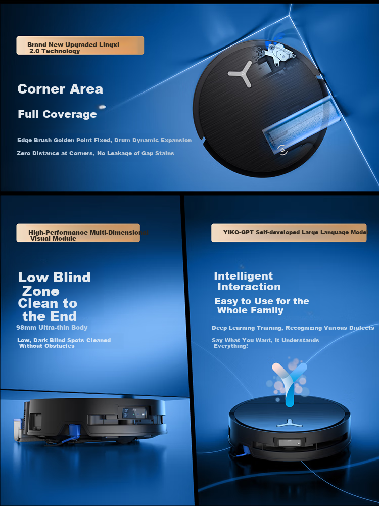 **Technology:** Features upgraded Lingsi 2.0 technology, comprehensive coverage in corner areas, dynamic expansion of rollers, multi-dimensional visual module, and YIKO-GPT language model for intelligent interaction.