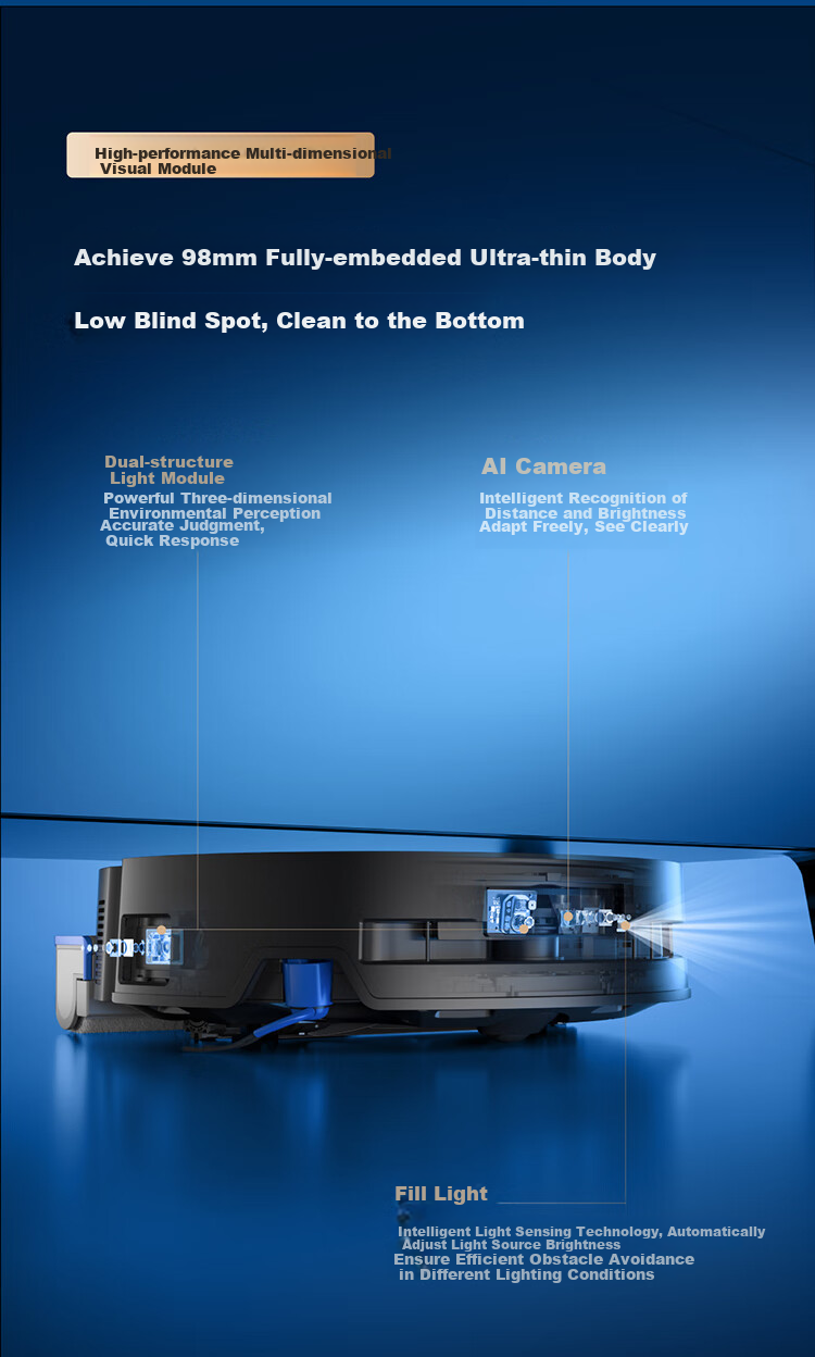 **Design:** Boasts a slim 98mm body, deep learning training, and multi-dialect recognition for efficient and thorough cleaning. Features a minimalist aesthetic design with metal brushed texture panel.
