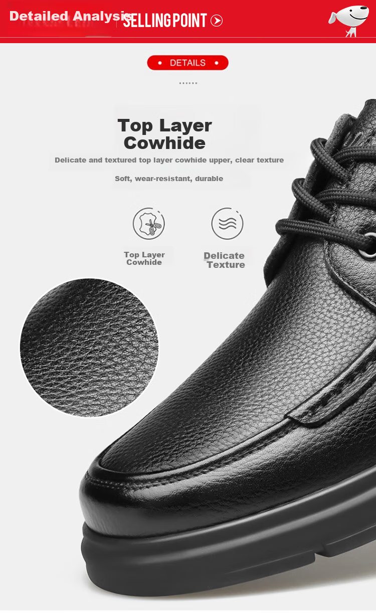 Top Grain Leather: Delicate and textured top grain leather upper, clear texture, soft, durable, and long-lasting.