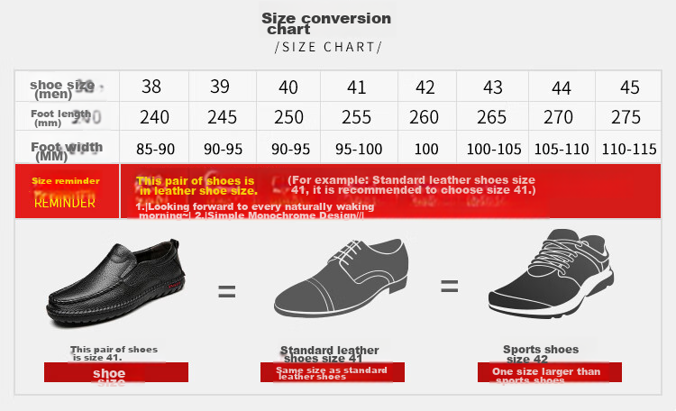 - Sizes: 38, 39, 40, 41, 42, 43, 44