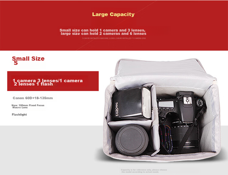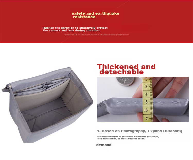 Shock Protection: Thickened dividers effectively protect the camera and lenses from vibration.