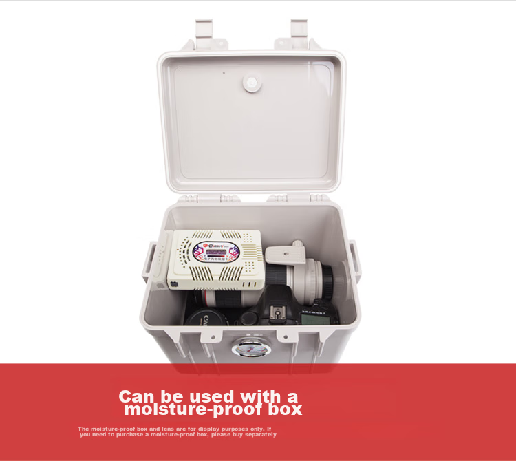 Note: Displayed moisture-proof box and lens are for demonstration purposes only, additional purchase required for moisture-proof box.