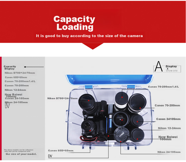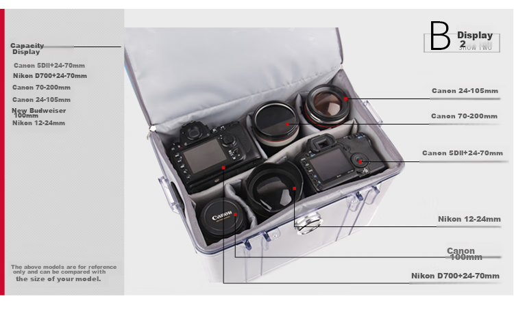- Suitable for various camera sizes such as Nikon D700+24-70mm, Canon 60D+60mm, etc.