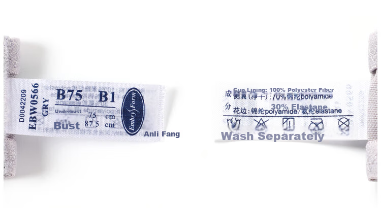 - Cup Lining: 100% Polyester Fiber