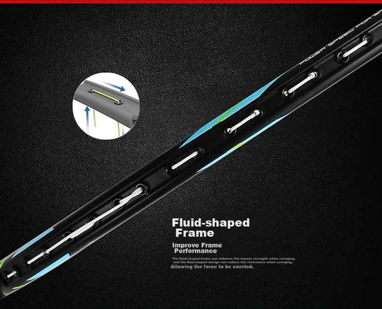**Fluid Frame Design:** Enhances racket performance by strengthening hitting intensity and reducing resistance during swings.
