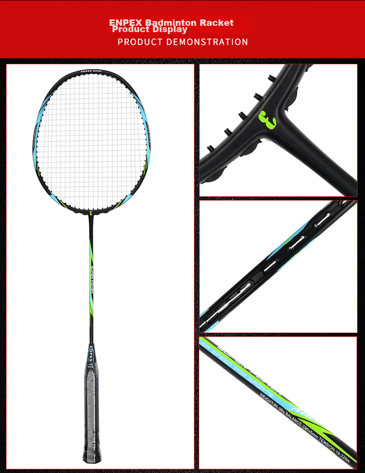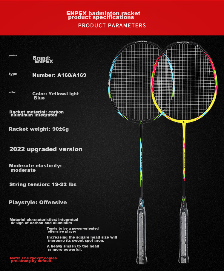 **Material Features:** Designed with carbon aluminum integration, suitable for power-based offensive players, square head shape increases the hitting area, head-heavy for stronger smashes, Note: Racket comes pre-strung.