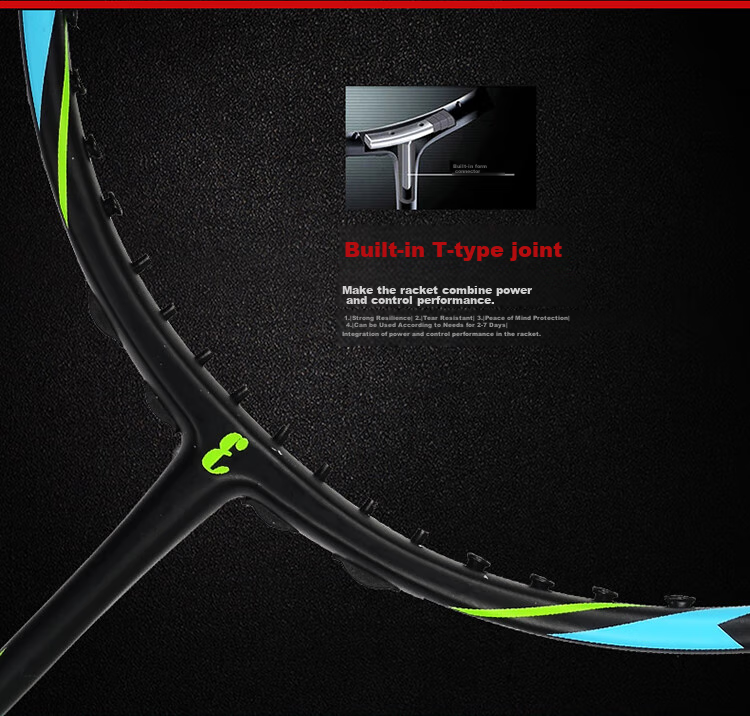 **Built-in T-Joint:** Combines power and control, hidden carbon layer integrated T-joint at the connection of the frame and shaft for a truly integrated racket.