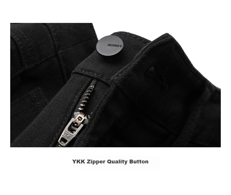 Features DENIMG fabric, YKK zipper, and quality buttons
