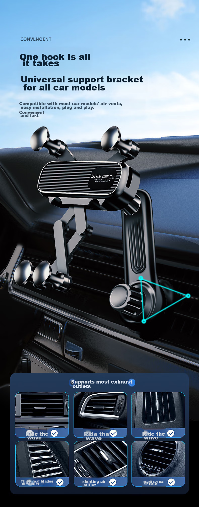 Convenient installation on most car vent types