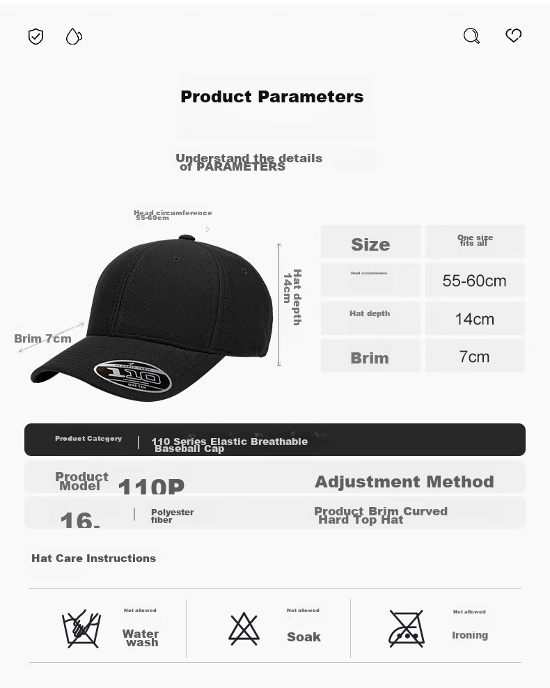 Design: 6-panel construction, breathable mesh fabric, adjustable brim curvature