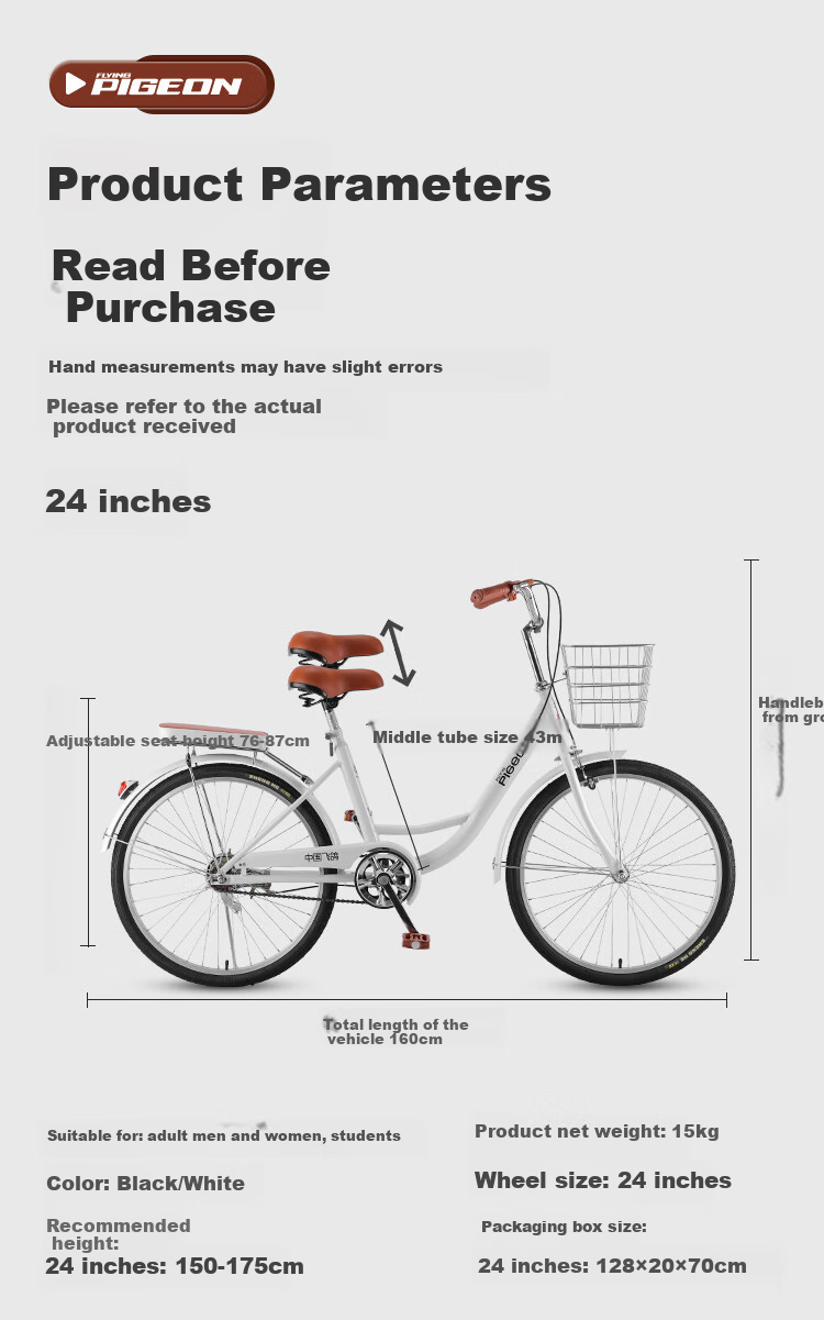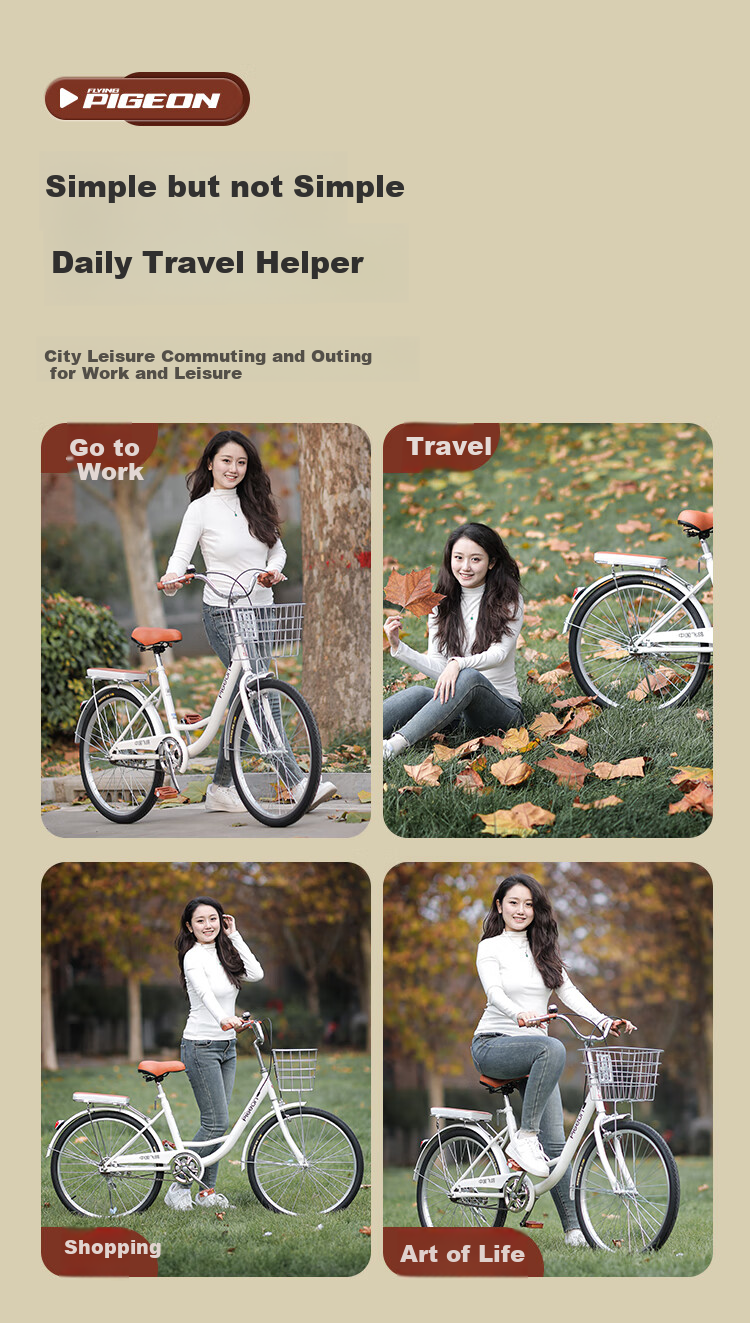 **Conclusion:** FLYING PIGEON PIGEON bikes offer a blend of style, comfort, safety, and convenience for urban commuting and leisure rides. Ideal for adults, students, and riders of all genders.