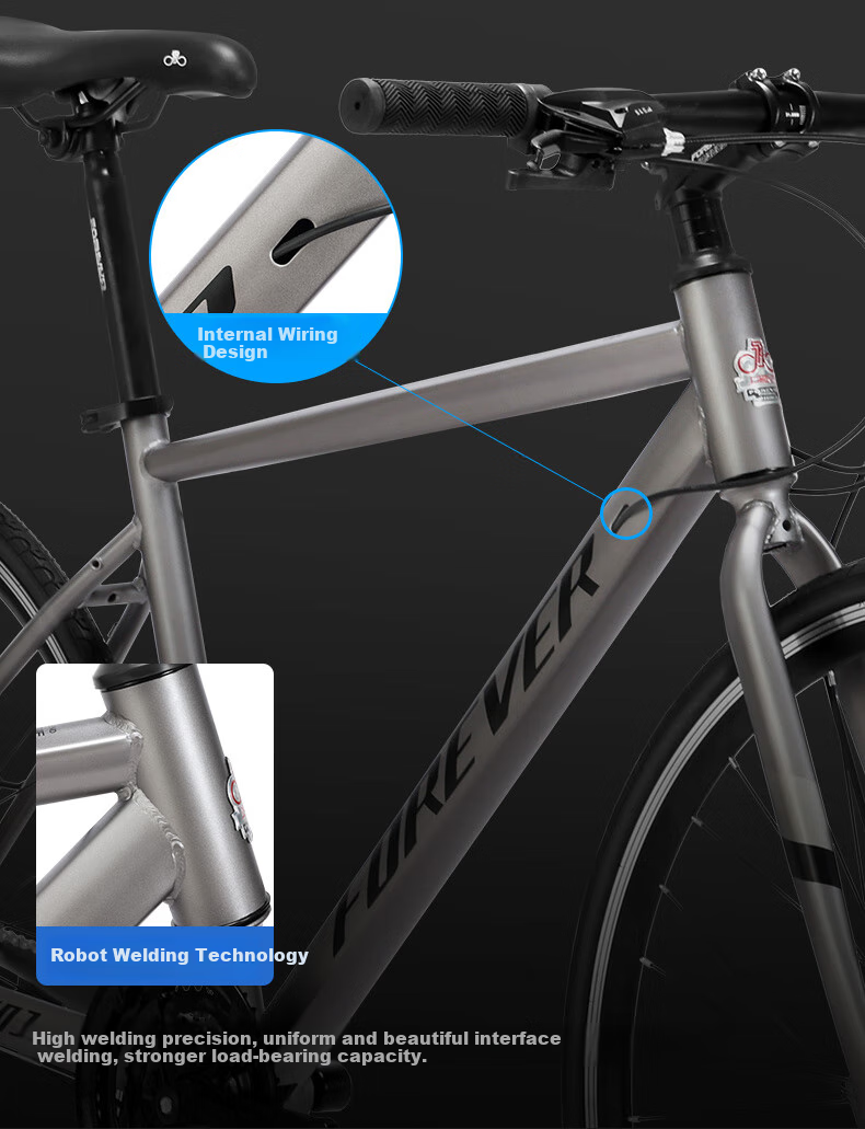 FOREVER GTDD3 is a high-performance 700C road bike designed for urban and rural roads, offering a sleek design and smooth riding experience. Whether cruising through the city streets or exploring countryside roads, this road bike is built to provide a thrilling and comfortable ride.