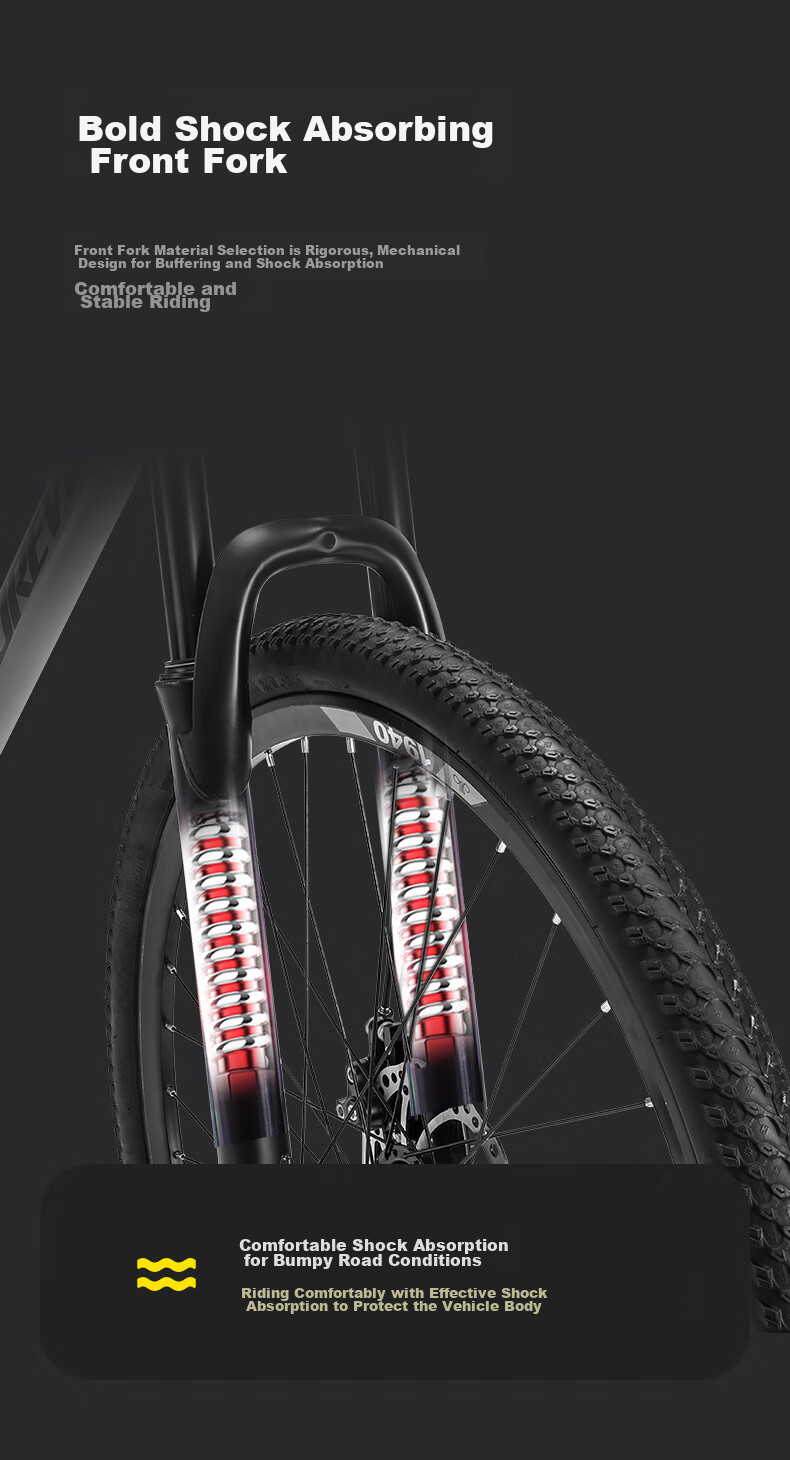 **Front Fork:** Bold shock absorption